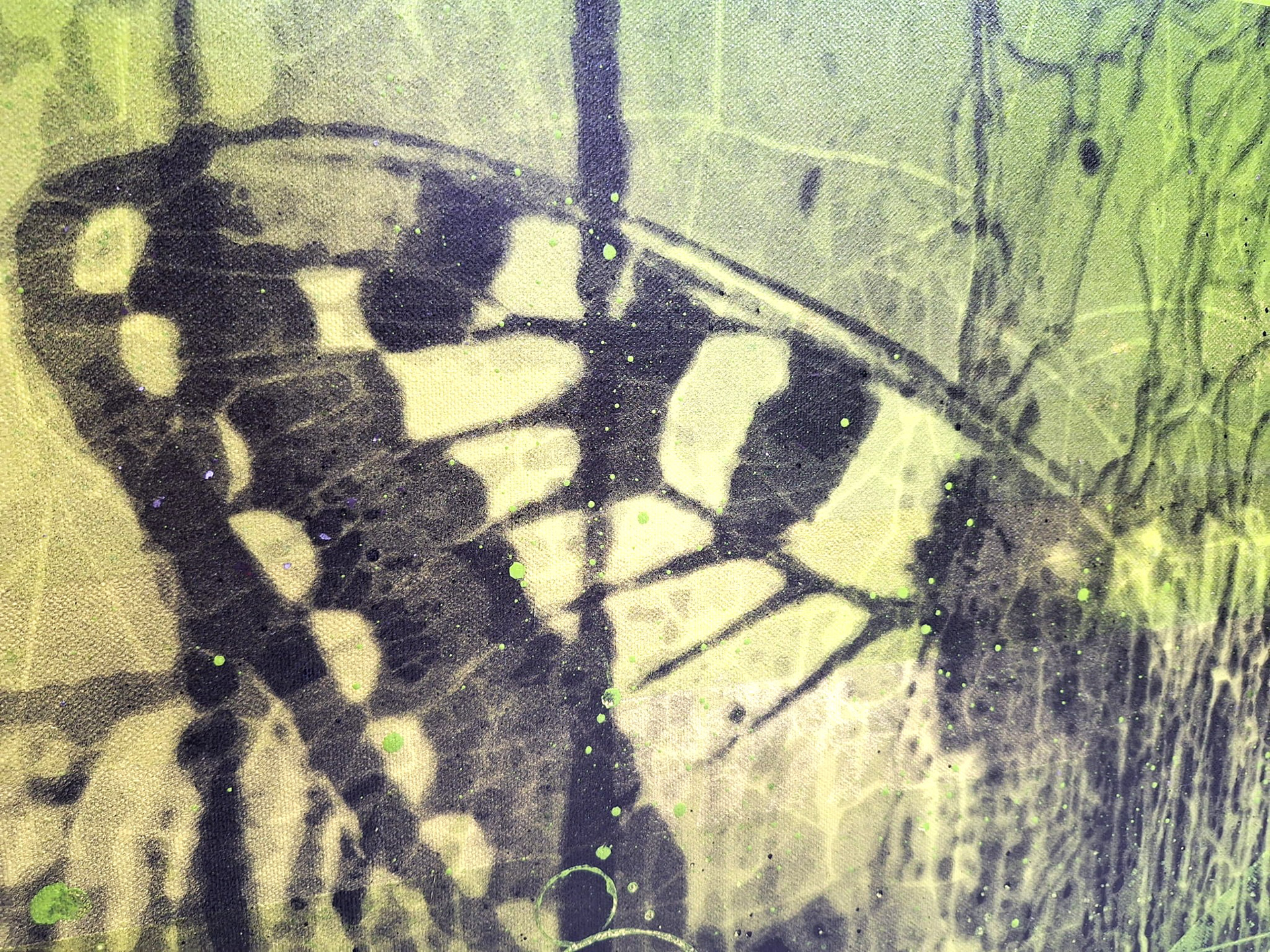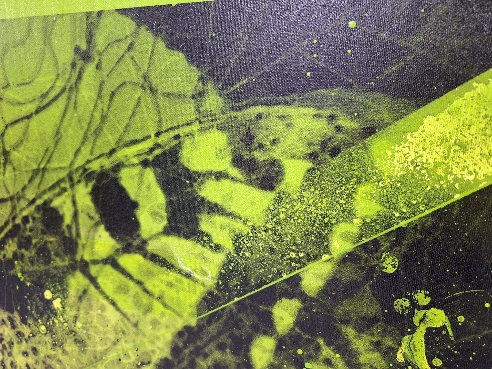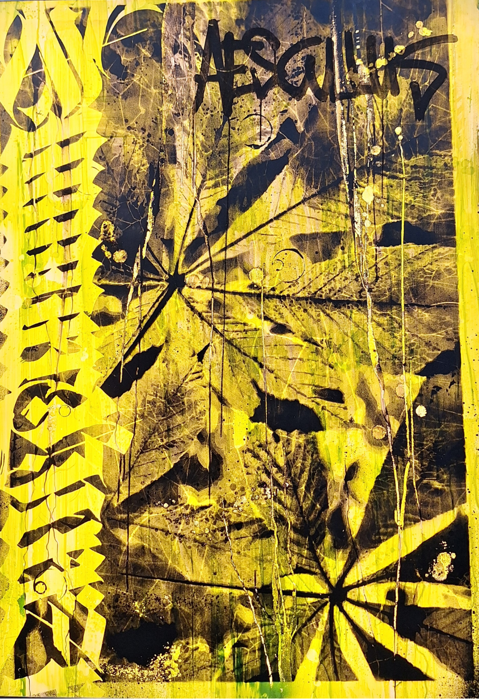 ręcznie wycinany szablon, spray, akryl / płótno