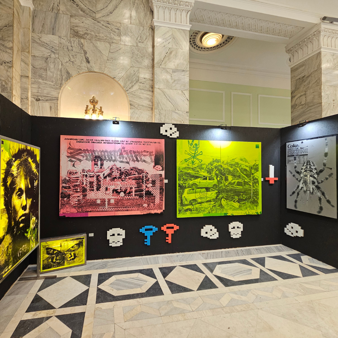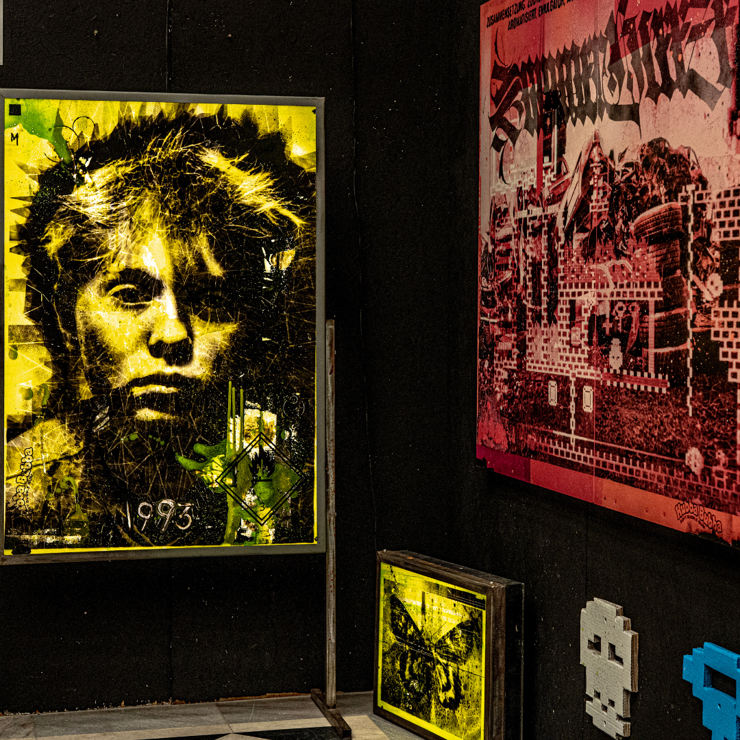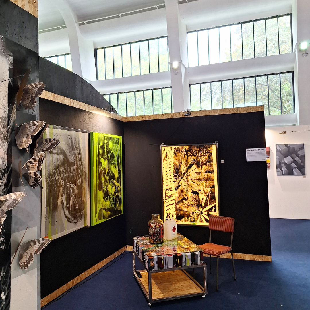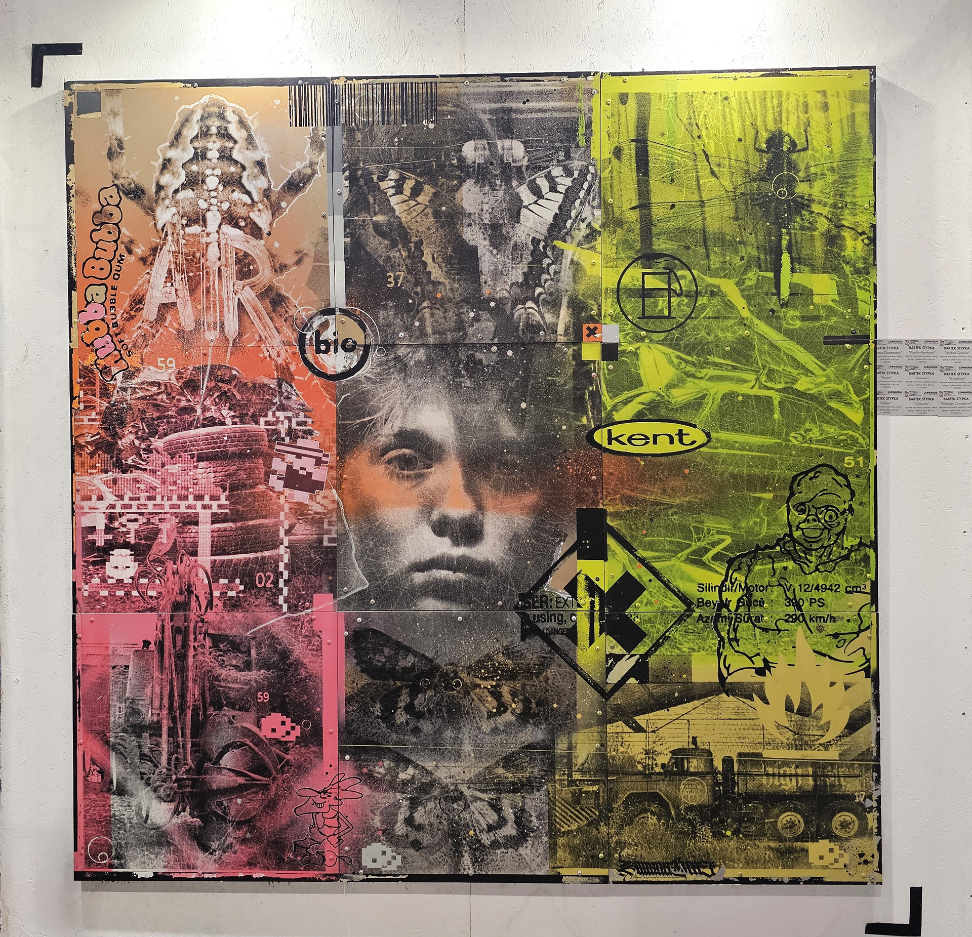 ręcznie wycinany szablon, spray, akryl / płótno