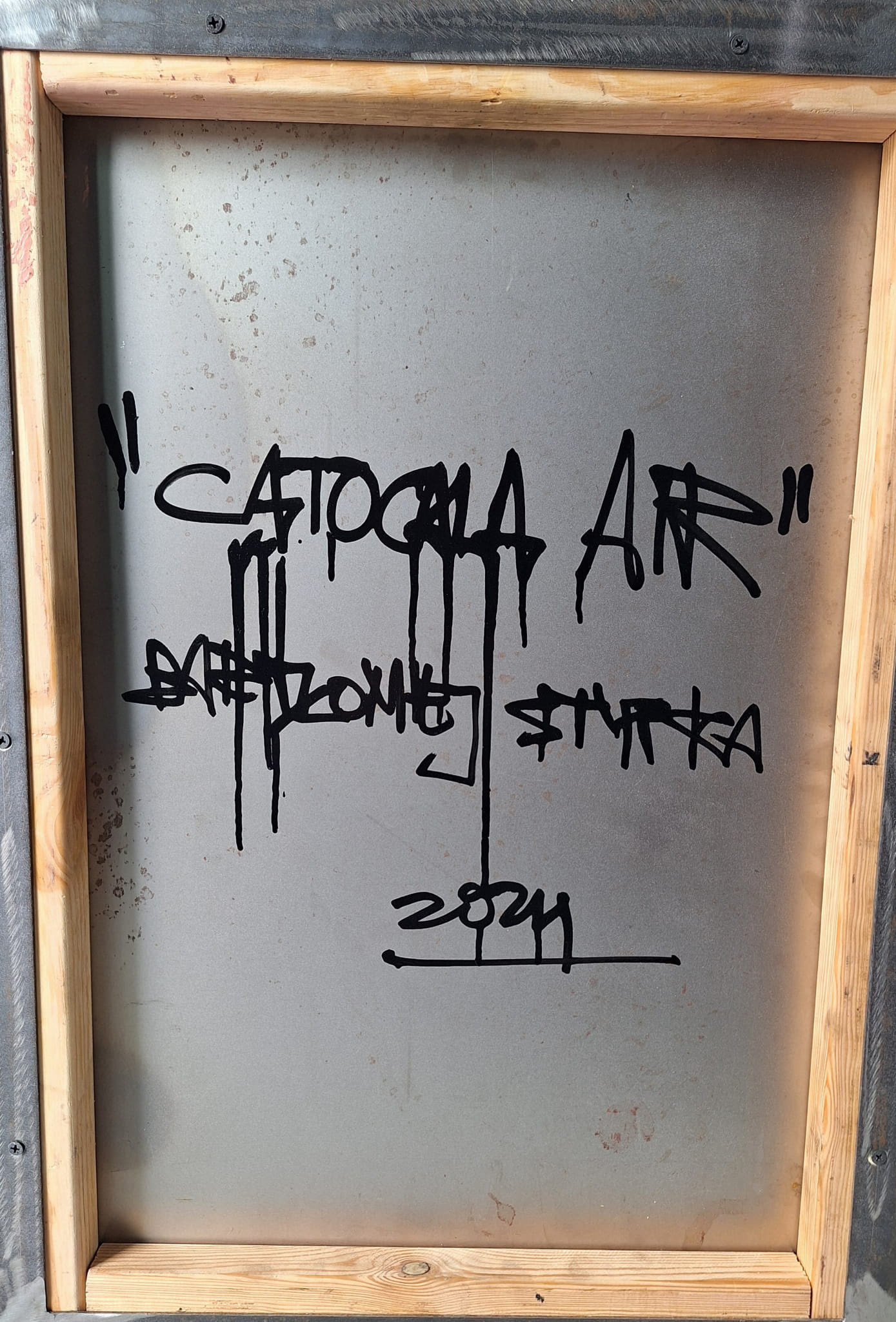 ręcznie wycinany szablon, spray, akryl / stal