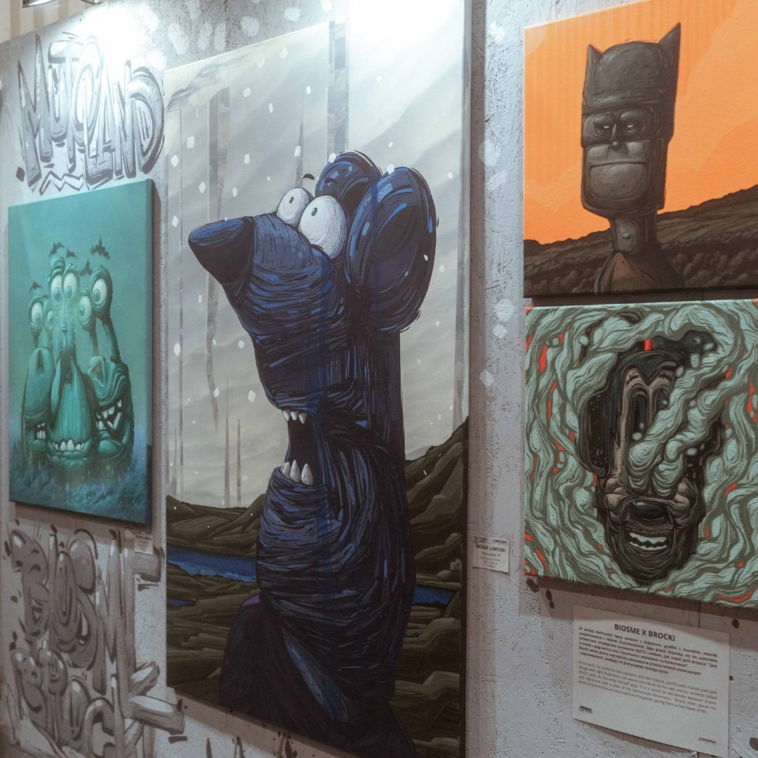 Brocki swoje prace najczęściej umieszcza w przestrzeniach zniszczonych i zapomnianych, nadając im pierwiastek nowego życia.