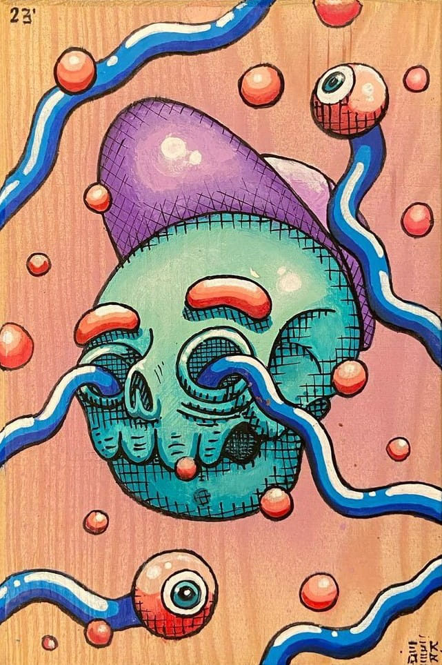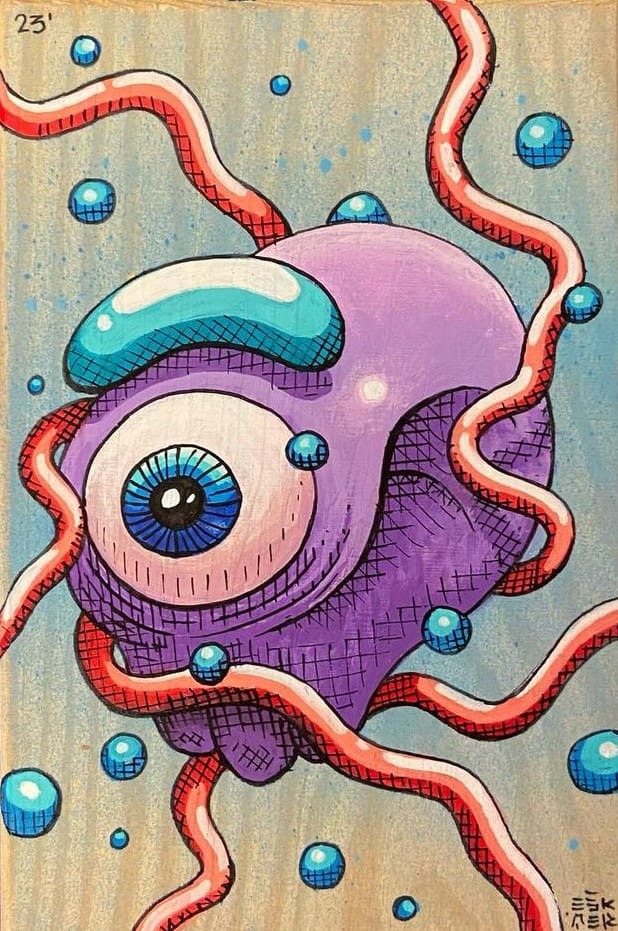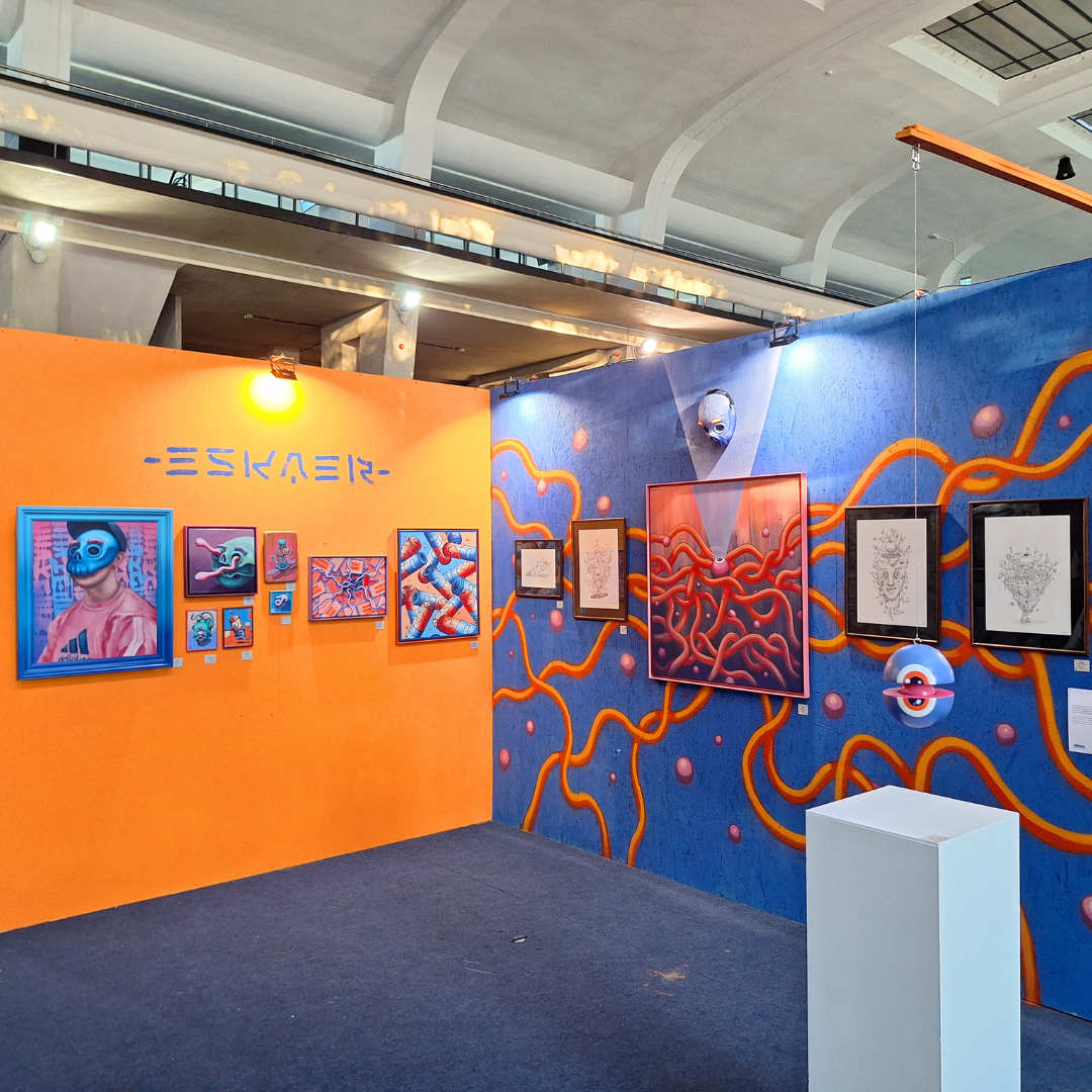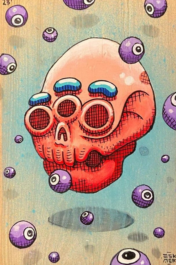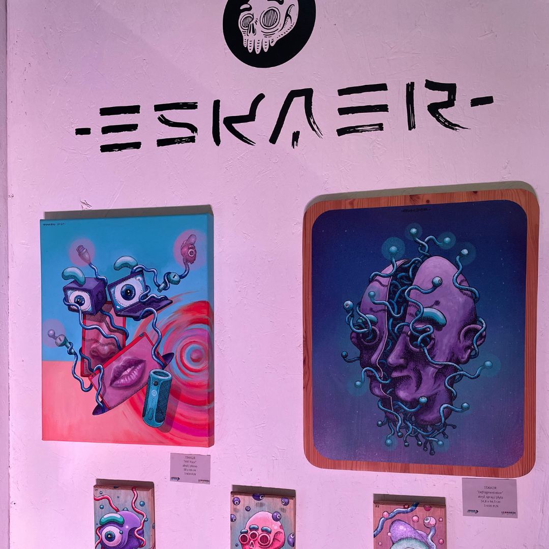 ESKAER - Artysta obecnie tworzący w Poznaniu aktywny od 2014 roku. W swoich realizacjach sięga po różne techniki między innymi vlepki, plakaty, murale, ilustracje, które zdobią nie tylko Poznań, ale i wiele miast na całym świecie.