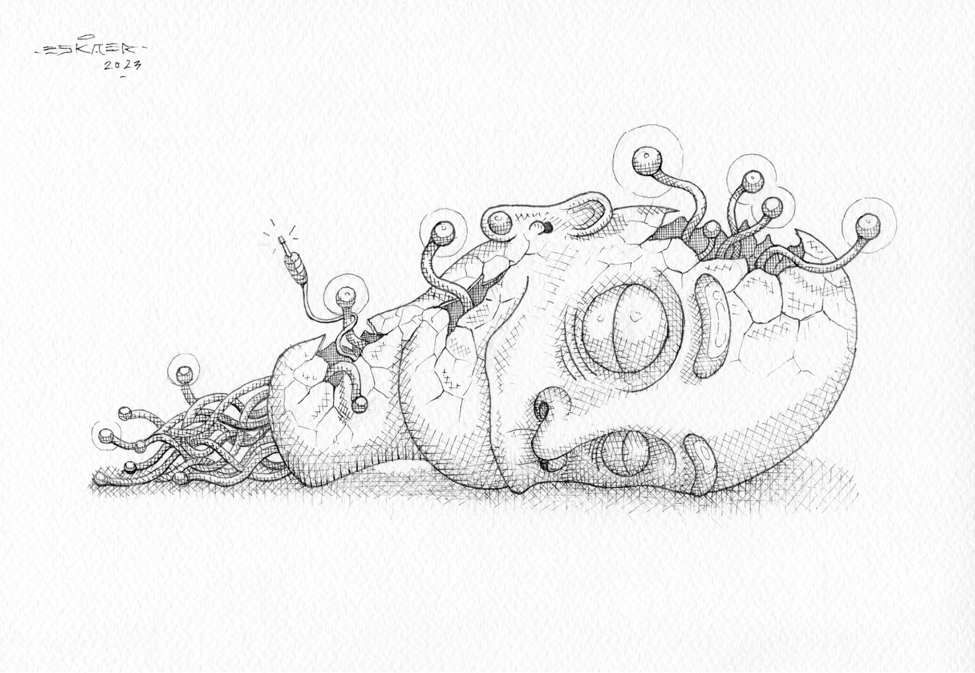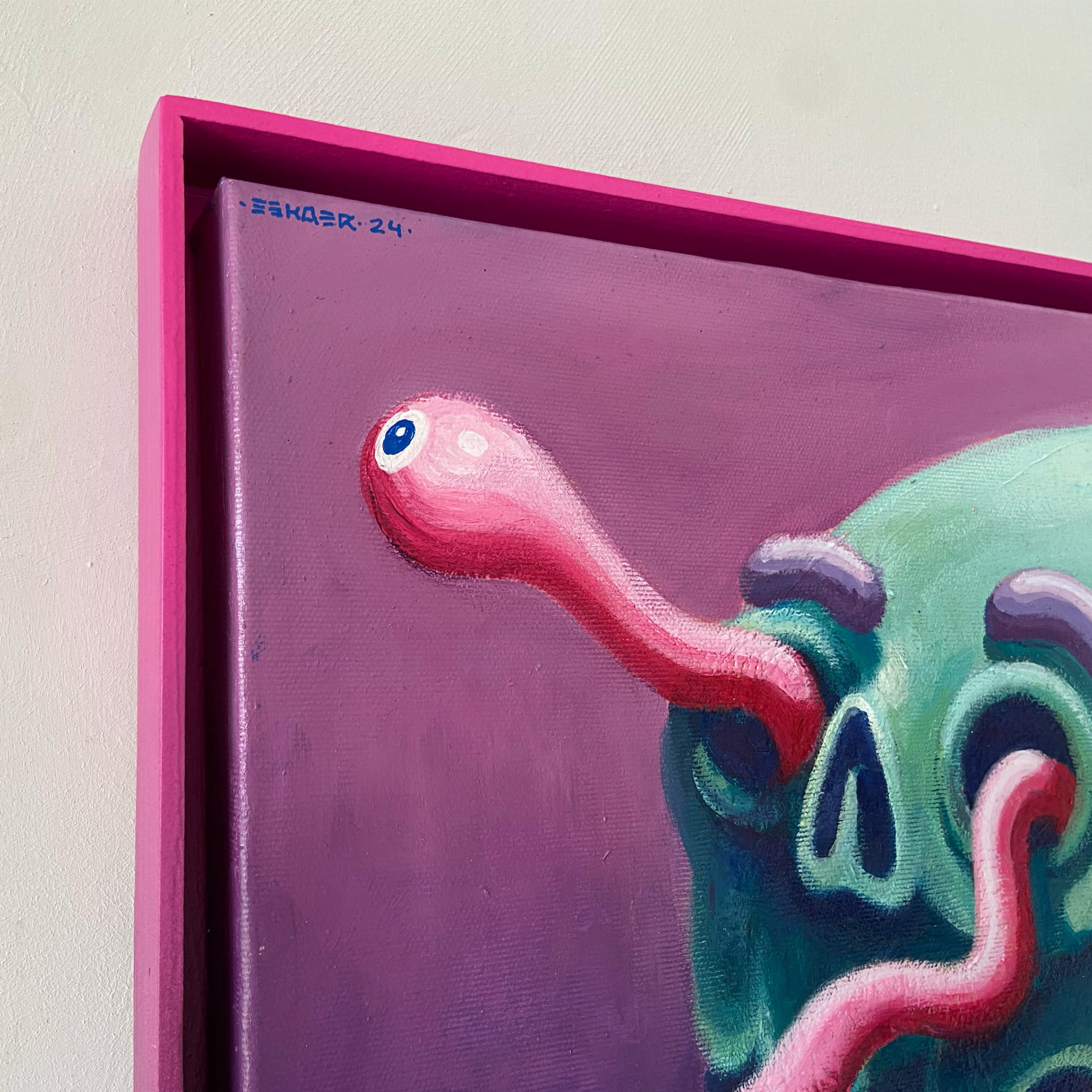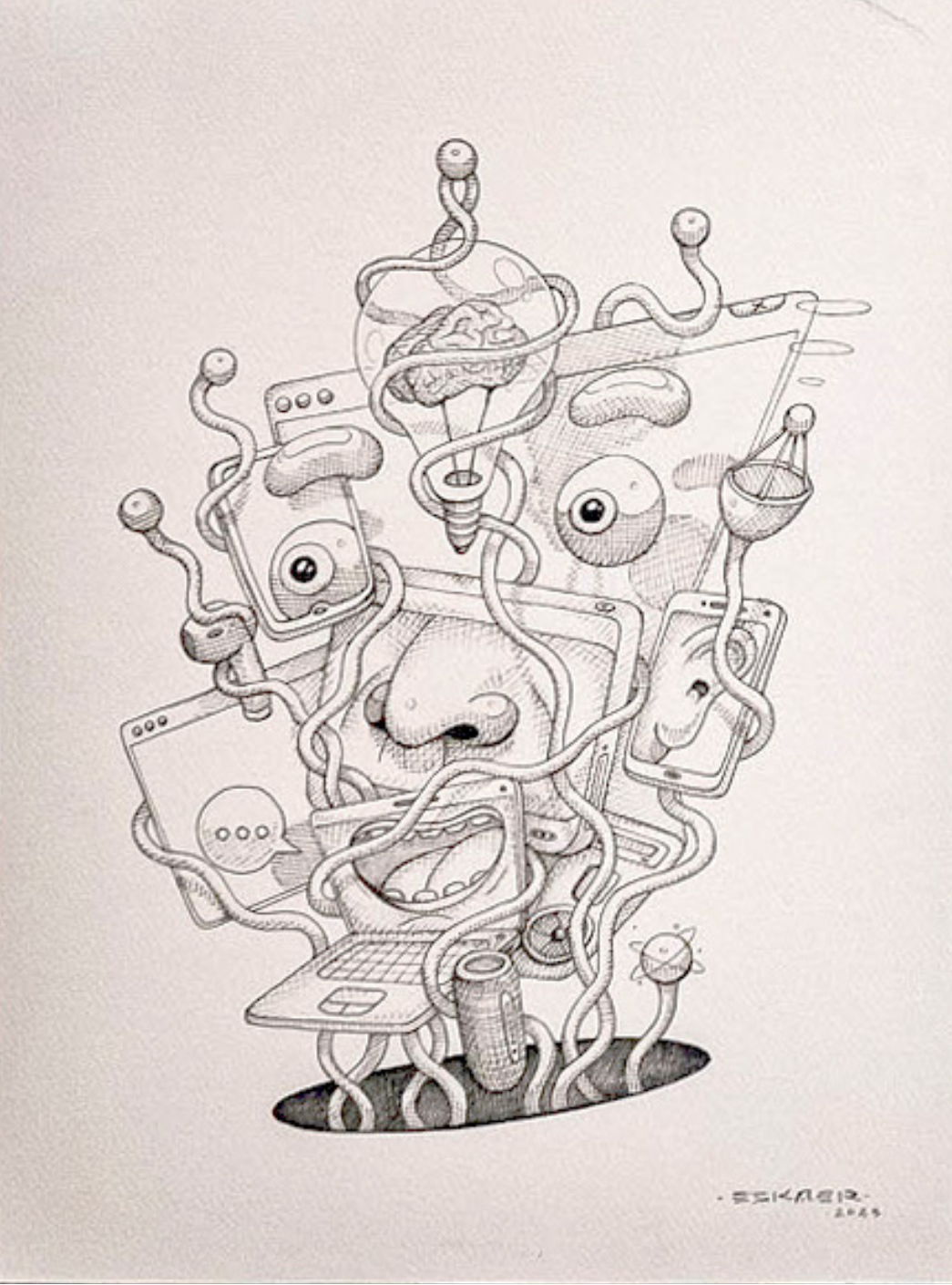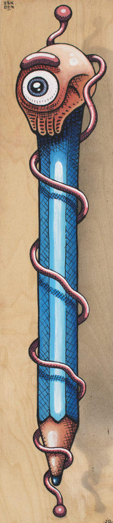 ESKAER - Artysta obecnie tworzący w Poznaniu aktywny od 2014 roku. W swoich realizacjach sięga po różne techniki między innymi vlepki, plakaty, murale, ilustracje, które zdobią nie tylko Poznań, ale i wiele miast na całym świecie.